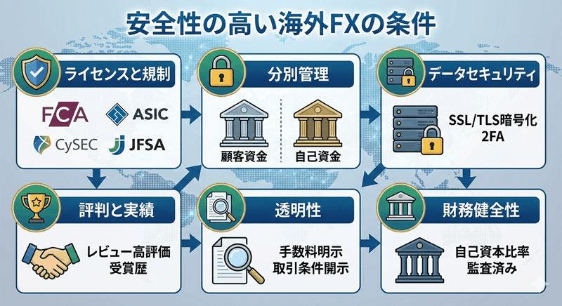 安全性の高い海外FX会社には、金融ライセンス・資金管理体制・出金実績・運営歴といった共通点があります。